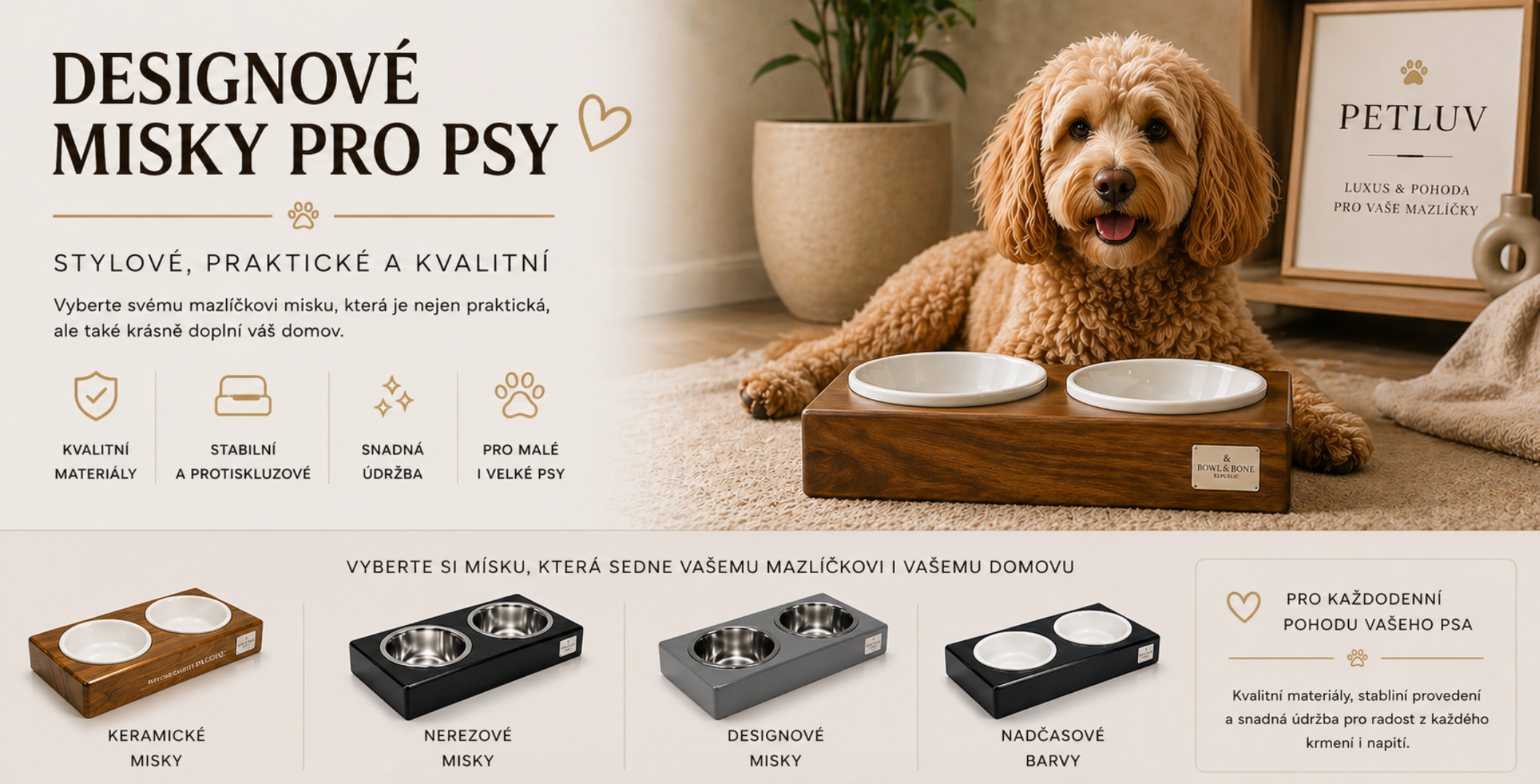 Pokud hledáte luxusní misku pro psa, designovou dvojmisku nebo elegantní krmné místo do moderní domácnosti, u PetLuv.cz jste správně.