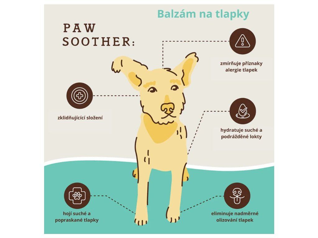 - Paw Soother = léčí a regeneruje (poškozené, suché, popraskané tlapky)